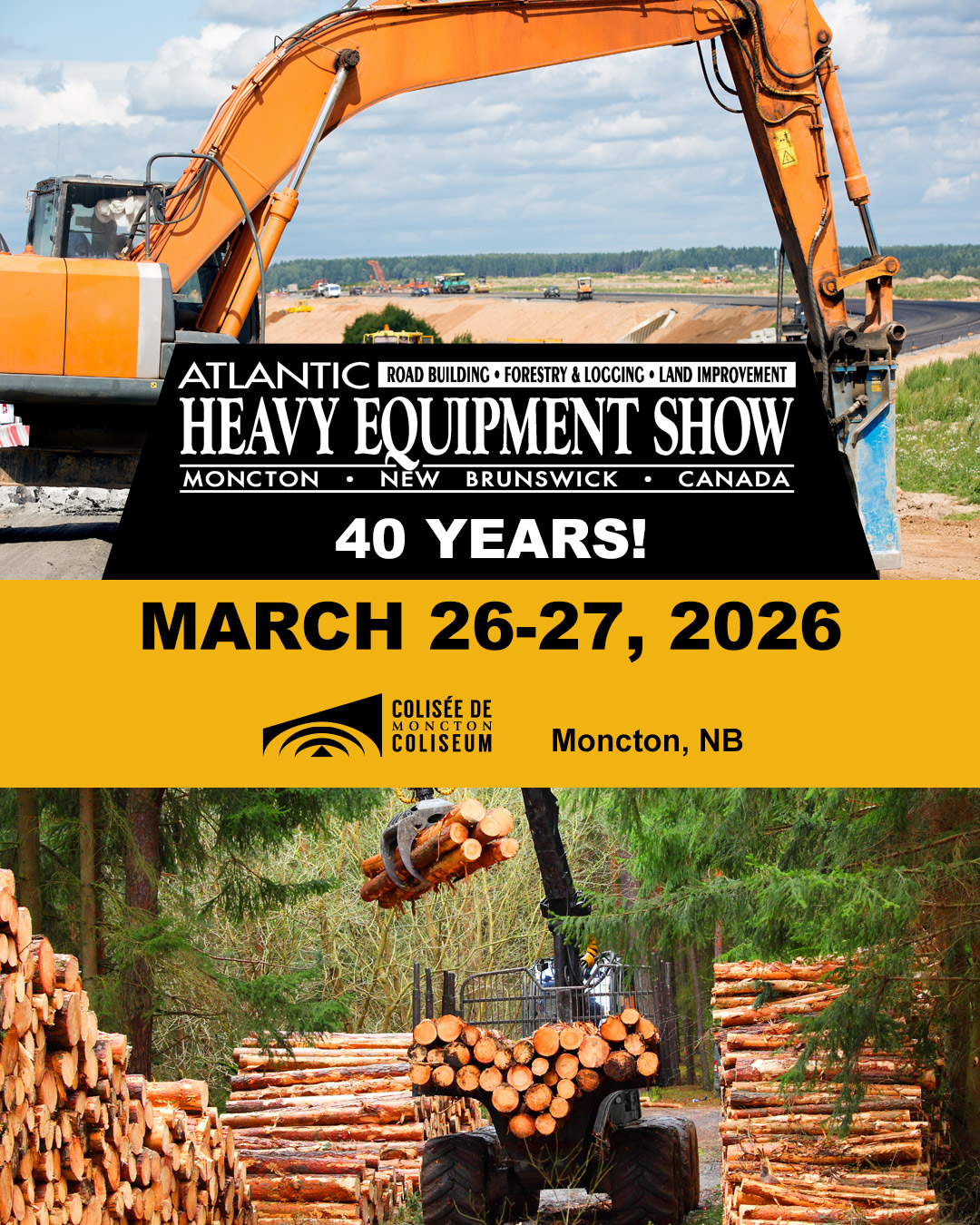 Join us at the Atlantic Heavy Equipment Show, Eastern Canada’s largest event for heavy equipment, construction, forestry, and roadbuilding professionals! Meet the (COMPANY NAME) team at booth (BOOTH#) and explore our latest machinery, tools, and technology. We’ll be at the Moncton Coliseum Complex in Moncton, NB, on March 26–27, 2026 — don’t miss it! Register to attend: [EVENT LINK]